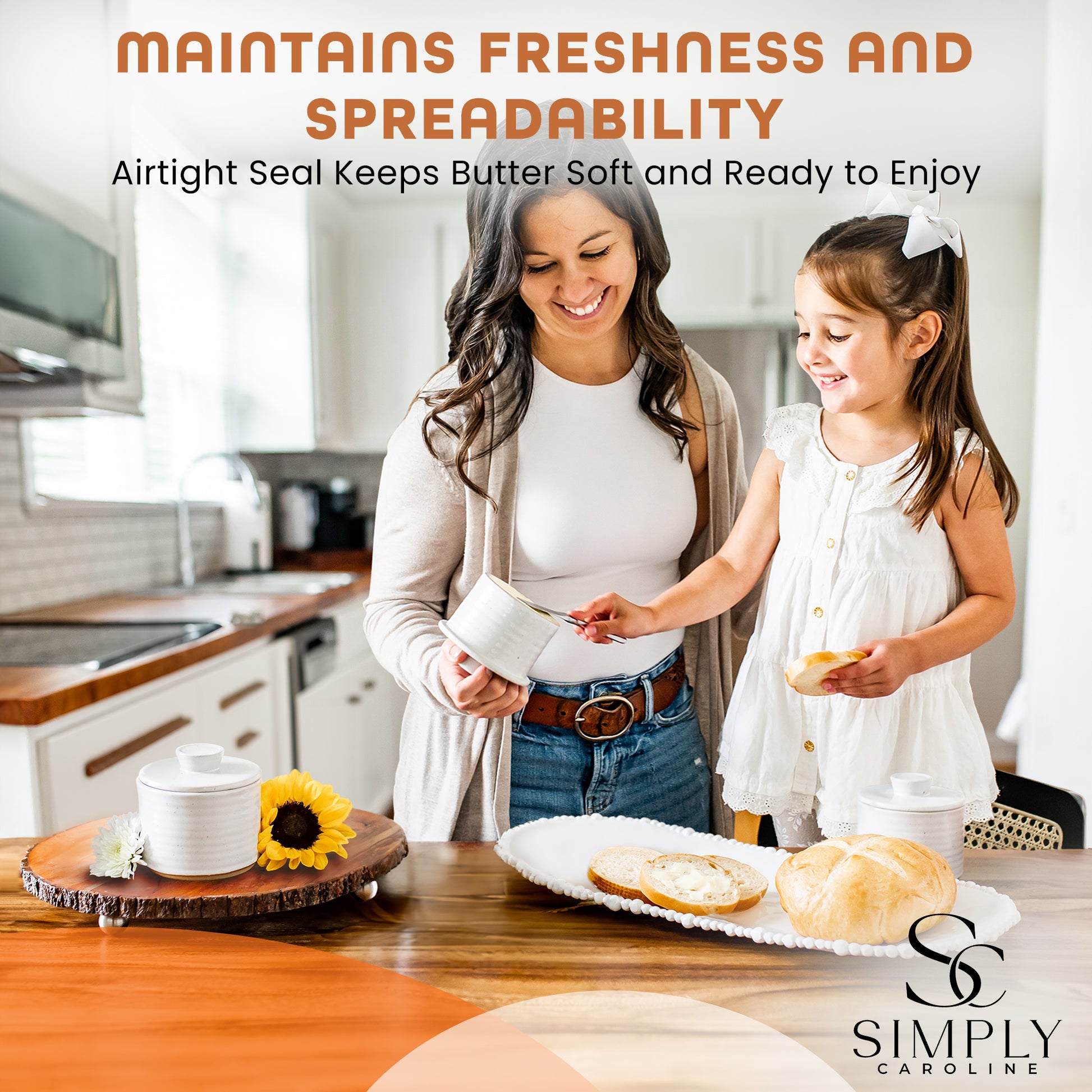 Bring timeless charm and practicality to your kitchen with our Simply Caroline French Butter Crock. Designed for effortless elegance, this handcrafted butter keeper ensures your butter stays soft, spreadable, and fresh—right on your countertop.