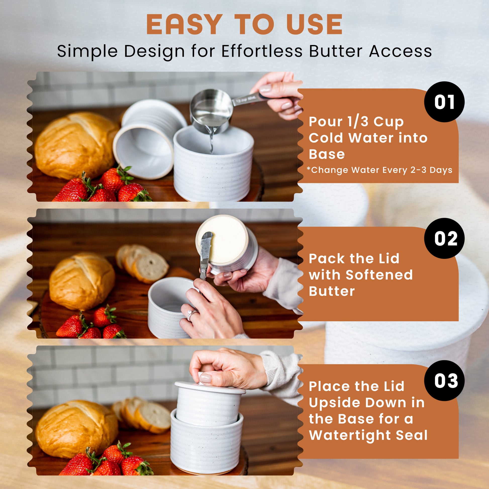 🧈 Soft, Spreadable Butter Anytime – The water-seal design keeps butter fresh while preventing spoilage, so you can enjoy perfectly spreadable butter on toast, pancakes, waffles, and more.
